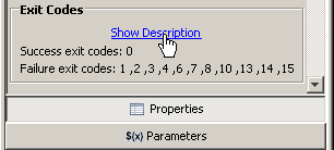 - While providing the information for a process, you can review the exit codes for a process. On the Properties pane, scroll down to the bottom and click Show Description, as shown in the image below.