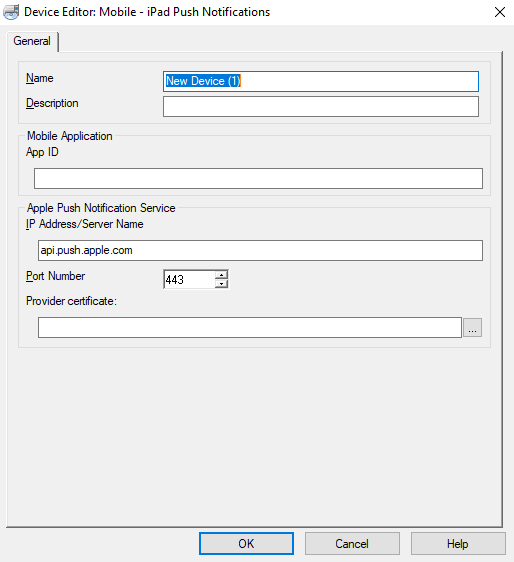 The default APNS server address and port number are api.push.apple.com and 443, as shown below.