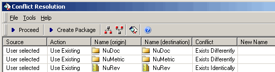 - For an explanation of each object action, see Choosing an Action to Resolve a Conflict.