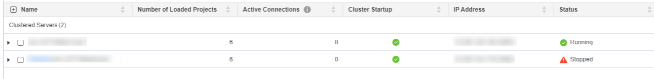 Stopped nodes will appear in the clustering monitor with a Stopped status.
