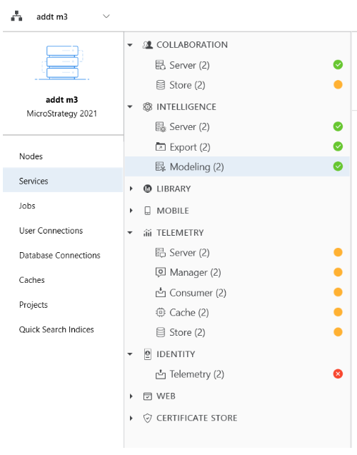 If you see error messages appear in the Modeling service, there may be more than one Modeling service running in your environment and/or some services may not be working properly. Starting in MicroStrategy ONE Update 11, you can check the amount of Modeling services running in your environment and see which one is causing the error.