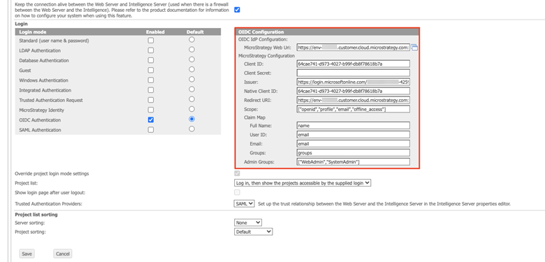 Click Save. For more information, see Enabling OIDC Authentication for JSP Web and Mobile.