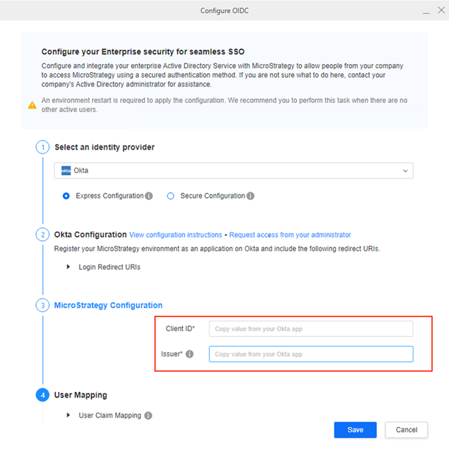 Okta: Under Strategy Configuration, provide the Client ID and Issuer.