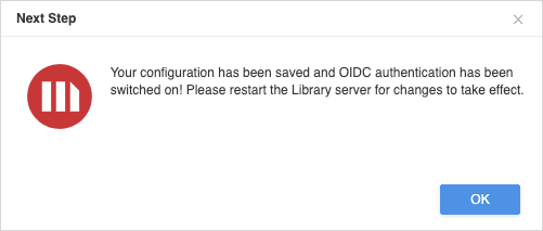 auth.admin.authMethod = 2The Library admin pages are protected by the OIDC admin groups mentioned in the OIDC configuration form. These admin groups are linked to the groups on the Identity Provider (IDP) side. Members that belong to the IDP admin groups can only access the admin pages. Users that do not belong to the admin group receive a 403 Forbidden error.