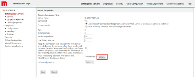 Next to Trust relationship between Strategy Web Server and Strategy Intelligence Server, click Setup.