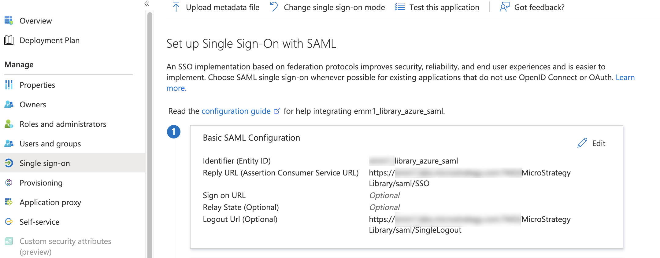 Starting in MicroStrategy 2021 Update 6, you can enable SAML single logout for Azure for the following products: