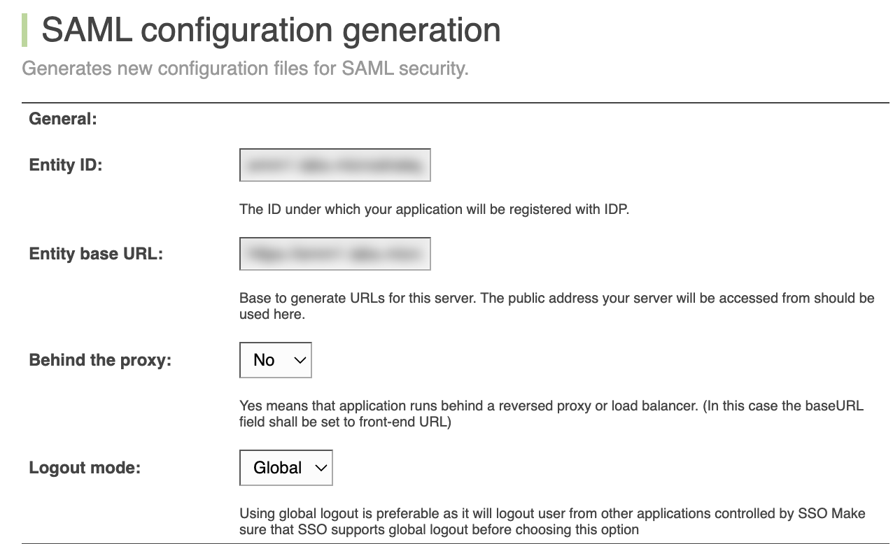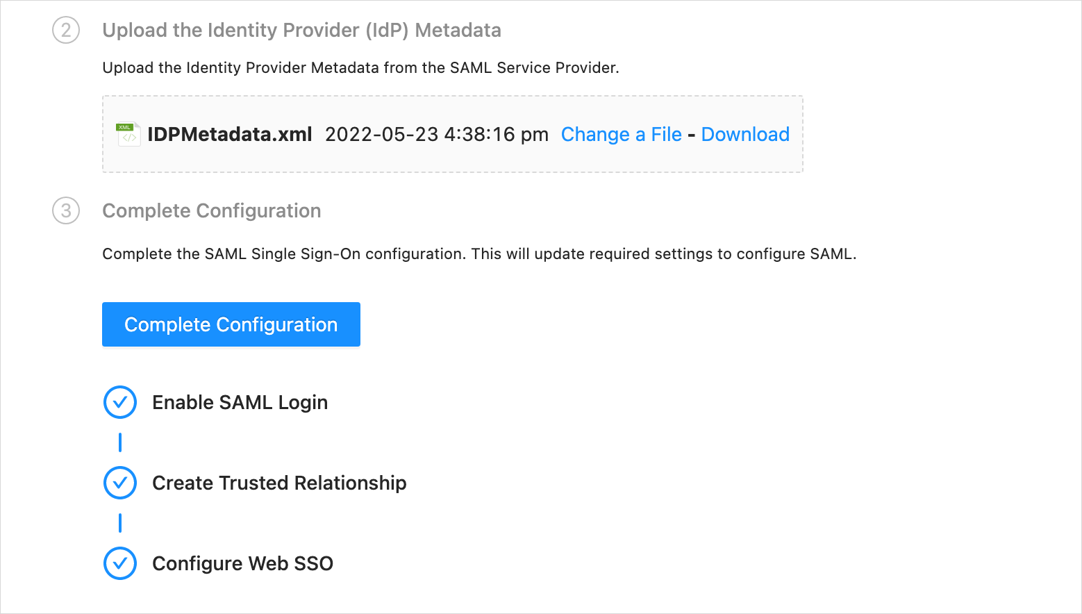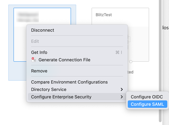 Right-click the environment and choose Configure Enterprise Security > Configure SAML.