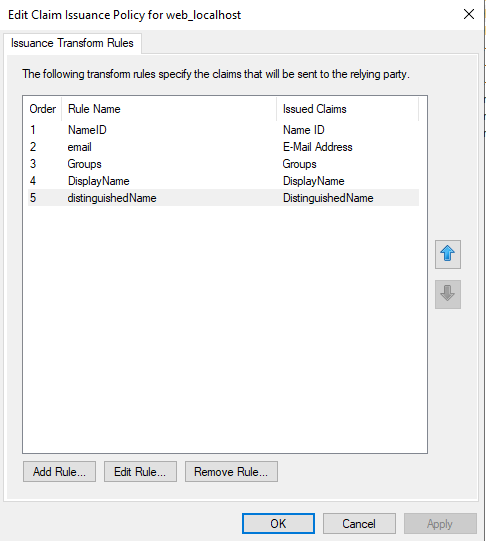 Right-click your registered application in ADFS > Edit Claim Rules.