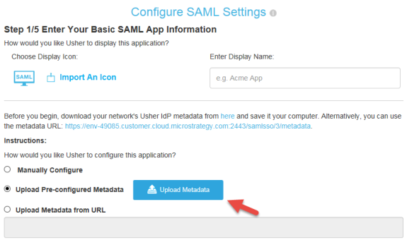 - Upload the SP metadata to the MicroStrategy Identity Server: