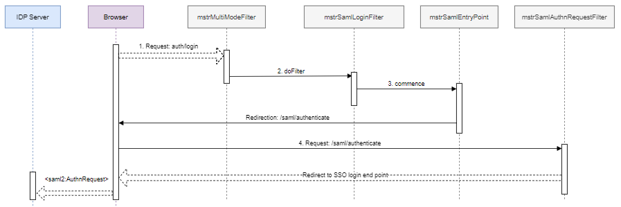 mstrSamlAuthnRequestFilterbean is<saml2:AuthnRequest>, which generates an endpoint that creates, signs, serializes, and encodes a<saml2:AuthnRequest>and redirects to the SSO login endpoint.