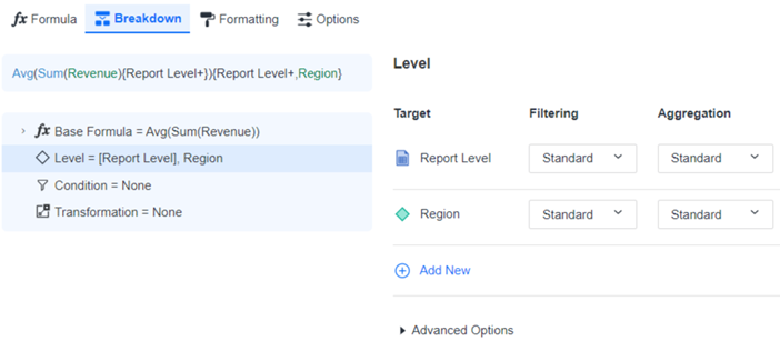 Click OK to save the formula and enable the other tabs such as Breakdown.