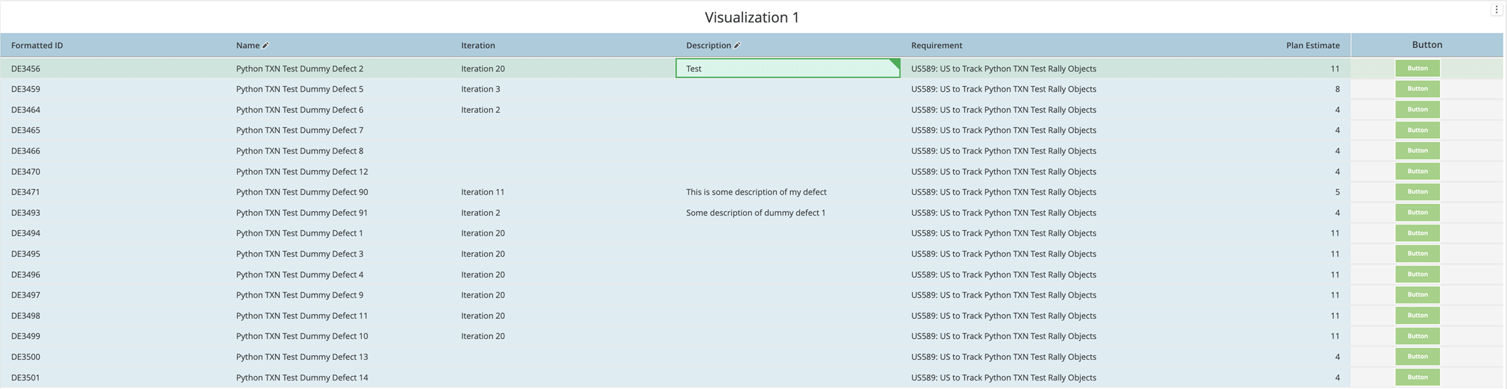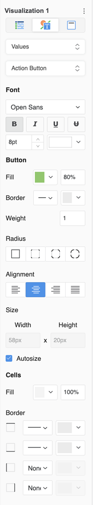 Starting in MicroStrategy ONE (September 2024), users can add a column of buttons to trigger actions defined in an associated Python script for the corresponding row. Before users can use buttons, they must be configured by the dashboard creator. Currently, only one button column can be added to a modern grid.