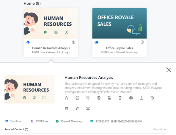 14. Starting in MicroStrategy 2021 Update 12, you can display or hide Content Discovery in the sidebar. Content discovery allows users to browse folders and access content. Starting in Strategy One (July 2025), Content Discovery is now called Browse Folders.