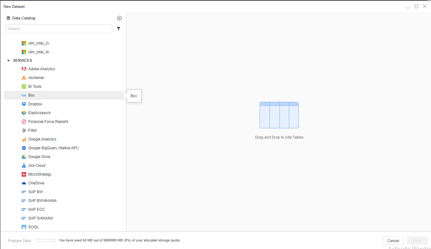 Starting in MicroStrategy 2021 Update 8, you can use the Box connector as part of the new data import experience.