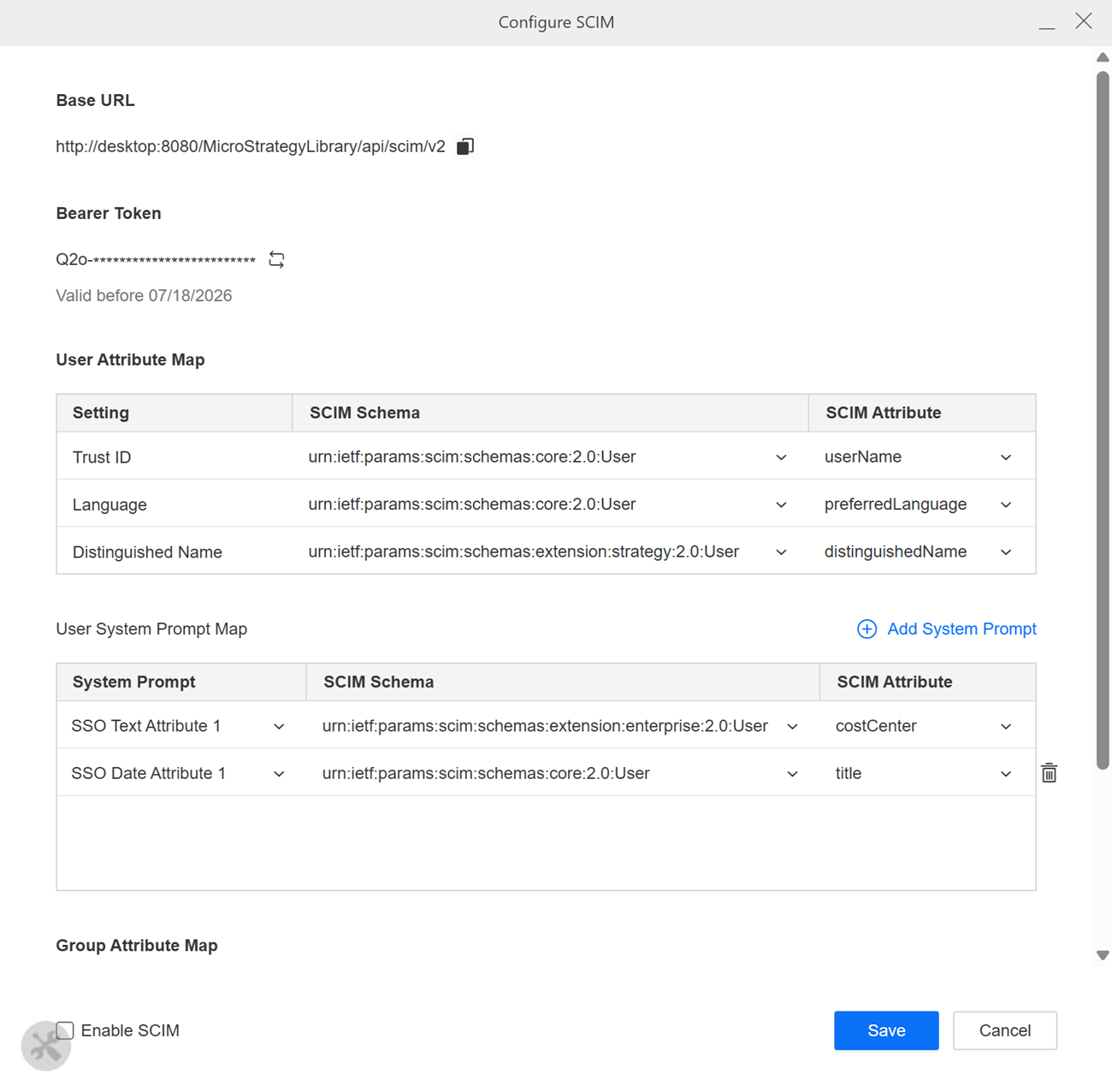 SCIM Bearer Token: The token for SCIM API authentication.