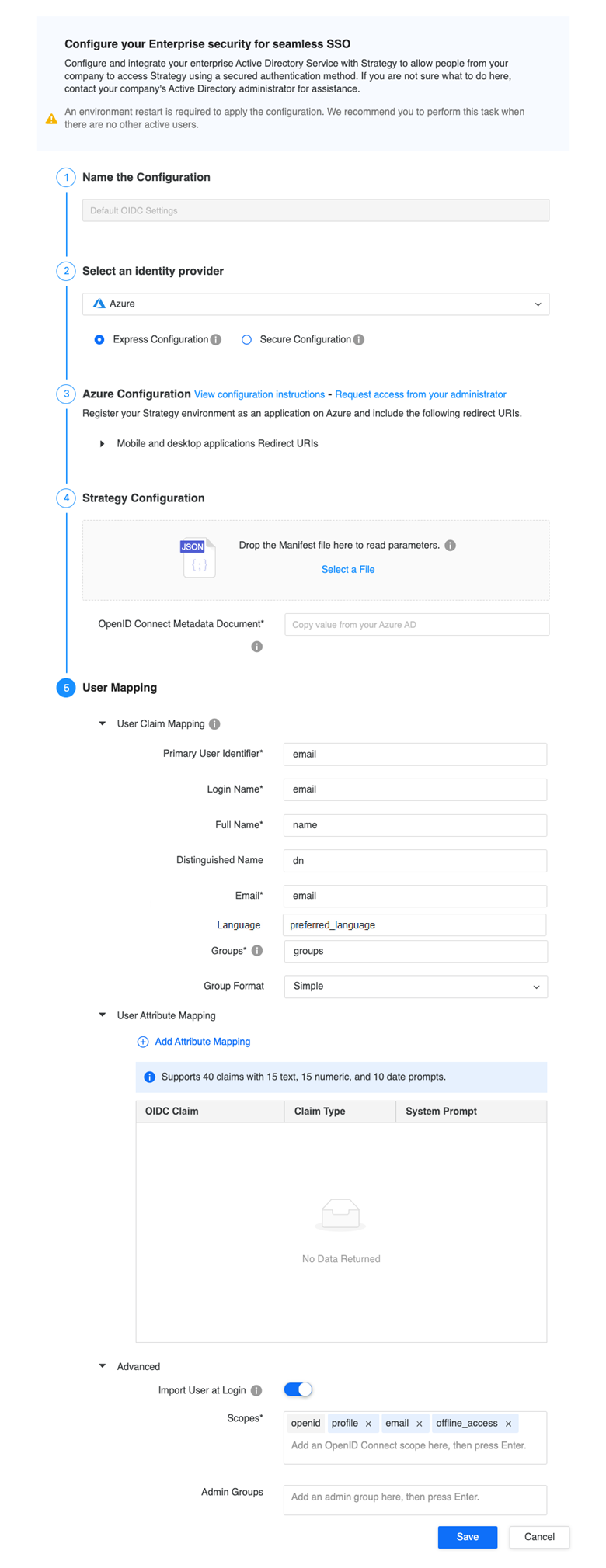 Email Enter the OIDC claim used as the user's email in Strategy. By default, the OIDC claim attribute is email.