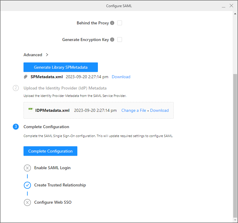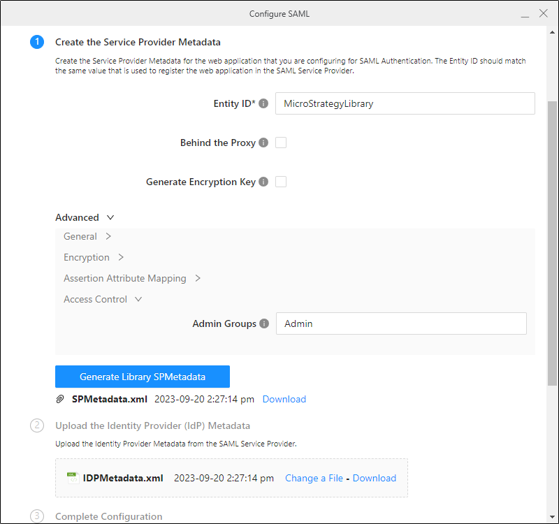 - Retrieve the resulting metadata file from your network or security team and rename the file to IDPMetadata.xml.
