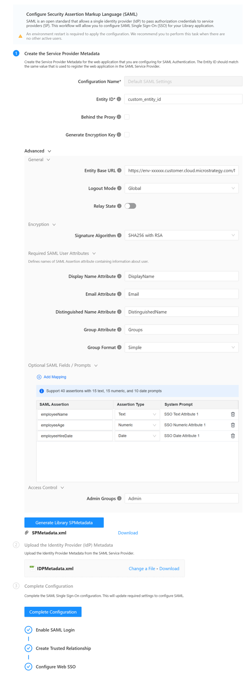 For information on enabling SAML in Library, see Enable SAML Authentication for Strategy Library.
