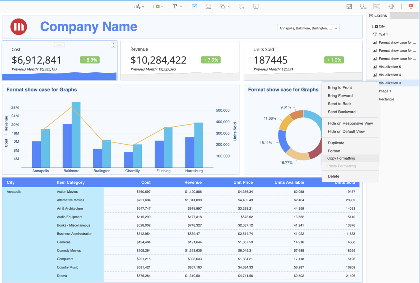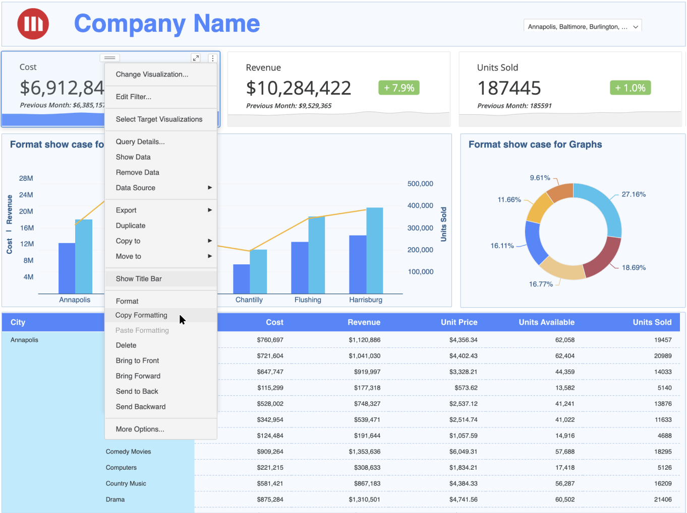 in the upper right corner of the visualization and choose Copy Formatting. - Right-click a visualization and choose Copy Formatting.
