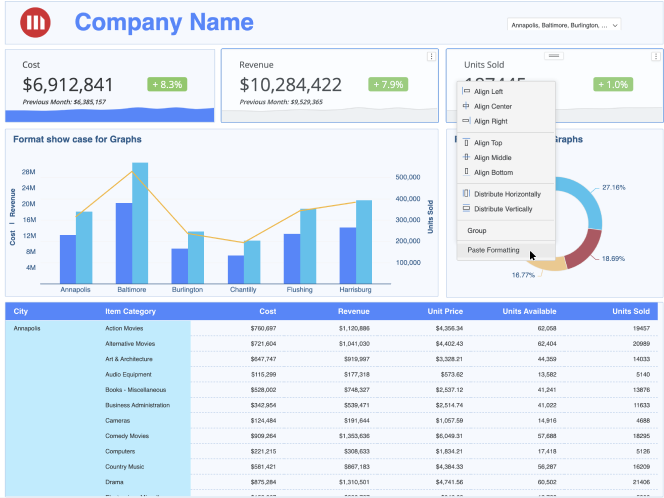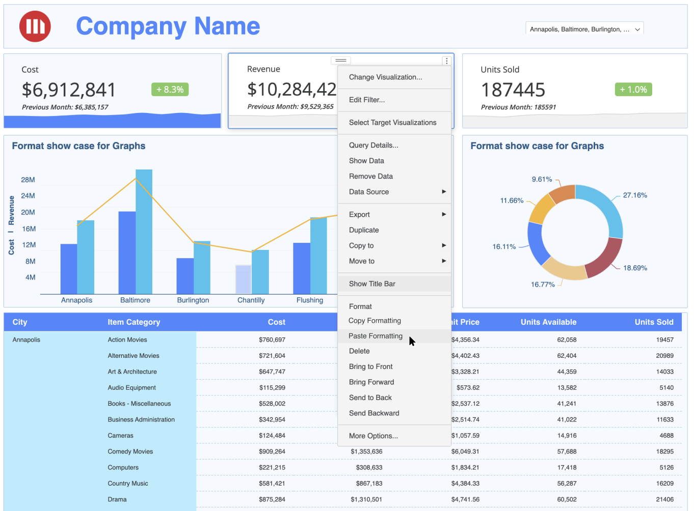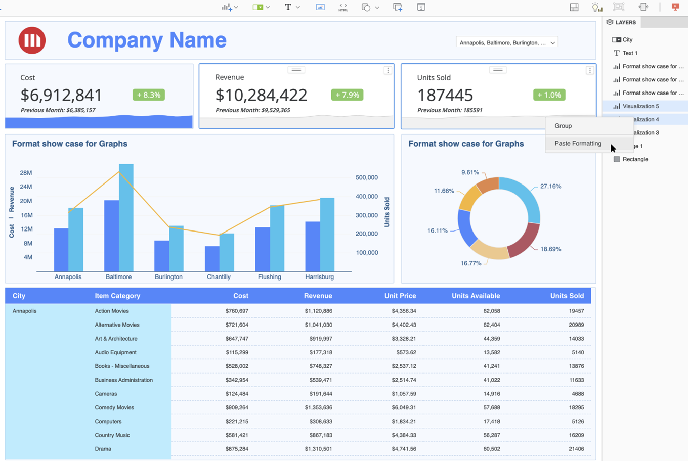 - Right-click on one of the selected visualizations and choose Paste Formatting.
