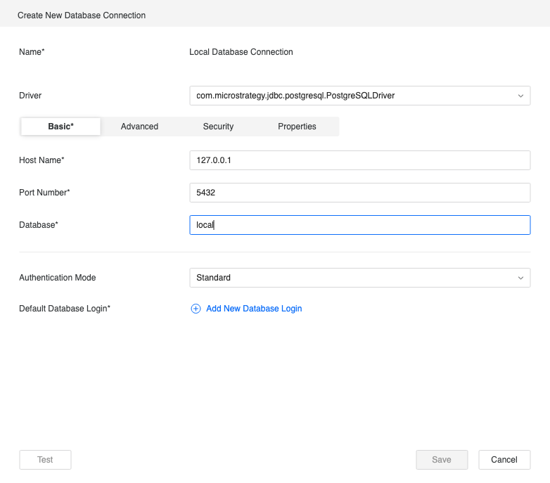 To complete the configuration and test connectivity, click Add New Database Login and complete the corresponding fields.