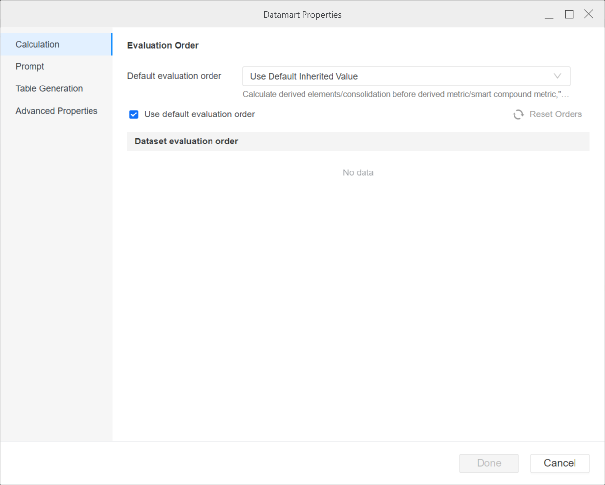Properties to set datamart properties.