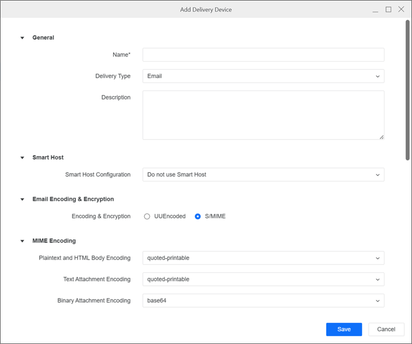 EmailGeneral Choose a Name, Delivery Type, and Description for the device.
