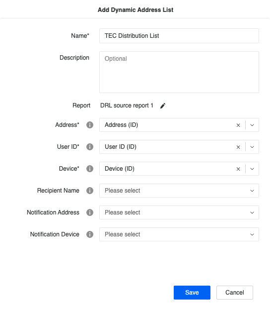 - Choose a Report and type a Name and Description for the dynamic address list.