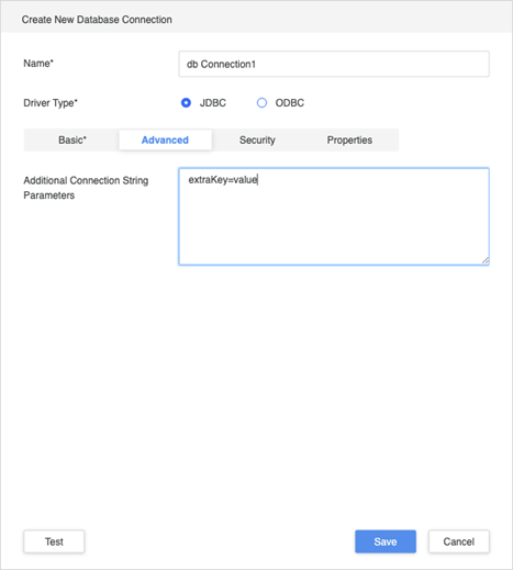 AdvancedInclude any additional parameters to add to the connection string. For example, you can use