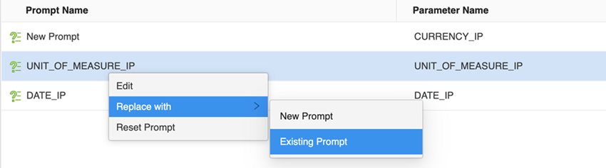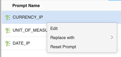 Edit, Replace, and Reset an SAP HANA Table Prompt