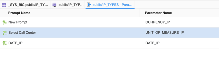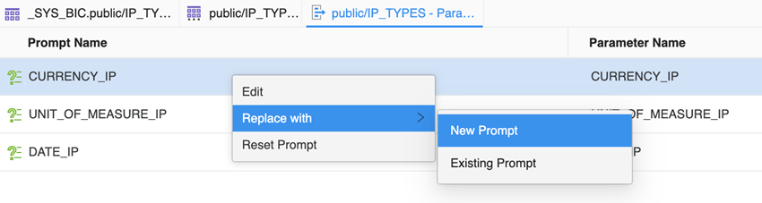The "New Prompt" is reverted back to “CURRENCY_IP”, which is the original prompt when this SAP HANA table is initially imported.