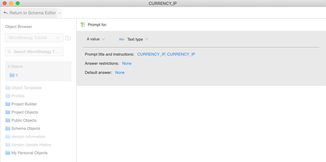 Starting in MicroStrategy 2021 Update 6, the Schema Editor in Workstation supports the creation of logical tables based on SAP HANA calculation views with input parameters. You can add SAP HANA tables to the schema and edit, replace, and reset a prompt in the table's preview panel.