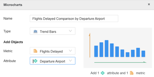 5. The Name box auto-populates with Metric Name Comparison by Attribute based on the metric and attribute you selected for the microchart. Type a new Name if necessary. The Name displays as the column header in the grid.