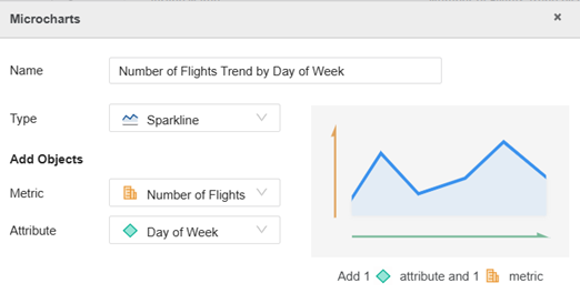 4. From the Attribute drop-down list, select the attribute to graph. The sparkline displays a point for the metric value of each attribute element (such as the number of flights for each day), connected by a line.