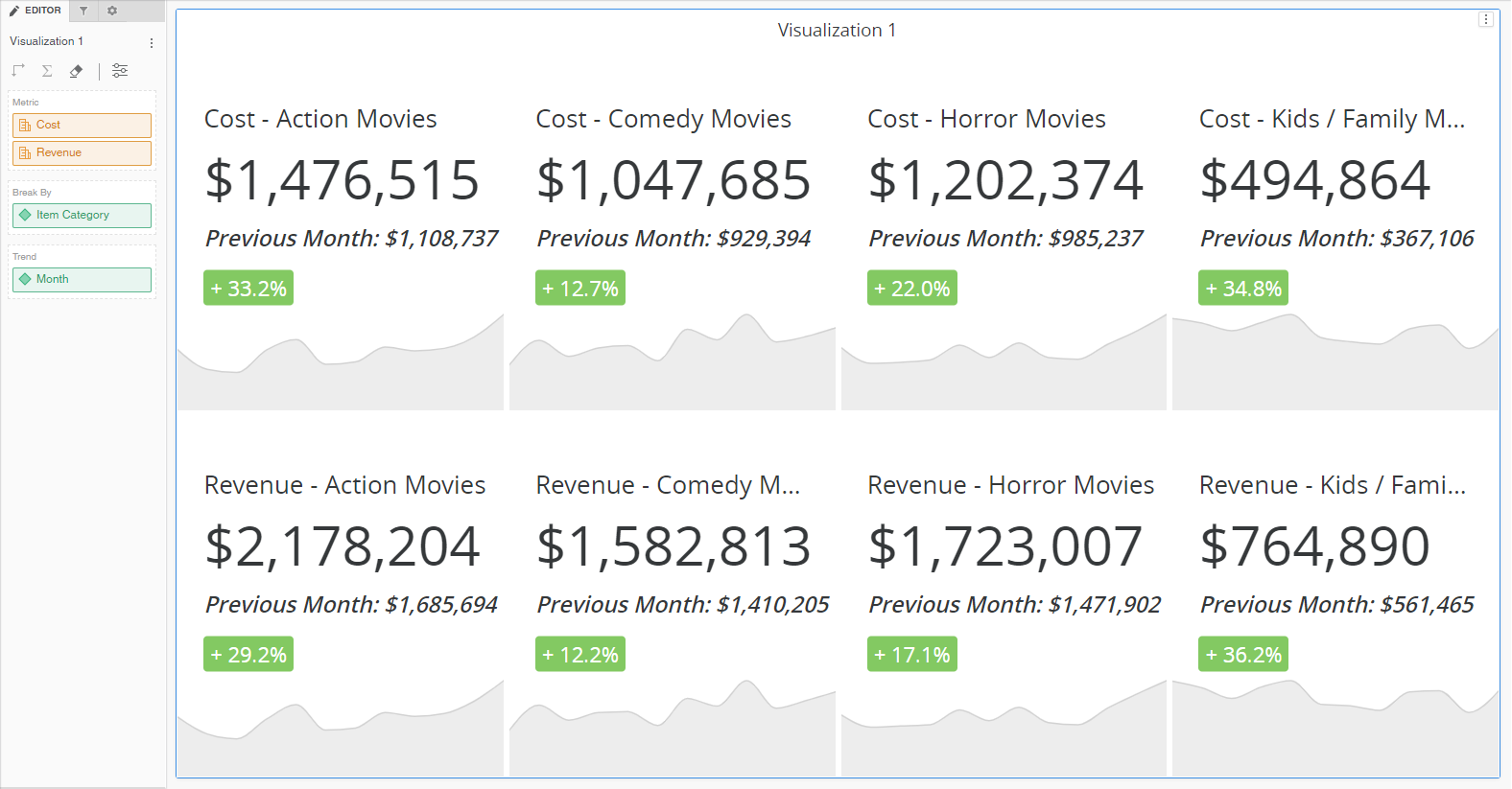 11. In the Editor panel, sort the cards by value from the metric or alphabetically from the attribute.