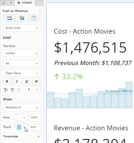5. Once you have a Trend attribute, open the Format panel and choose the Trend Shape.