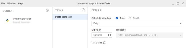 Starting in Strategy One (March 2025), you can create a planned task, which schedules the execution of Python scripts in Workstation. Planned tasks function similar to subscriptions, but instead of reports, the content is a Python script, and there is no recipient.