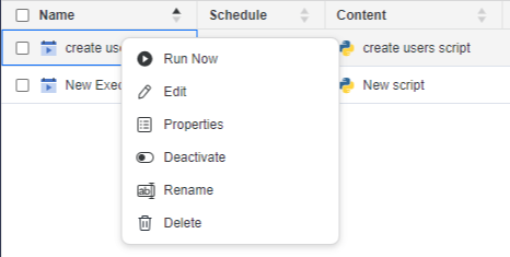 - Detail: Schedule details and script variable(s) if used in the underlying script