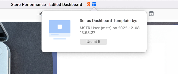 in the title bar, as well as the Workstation window. If necessary, you can remove the dashboard as at template by clicking Unset It.