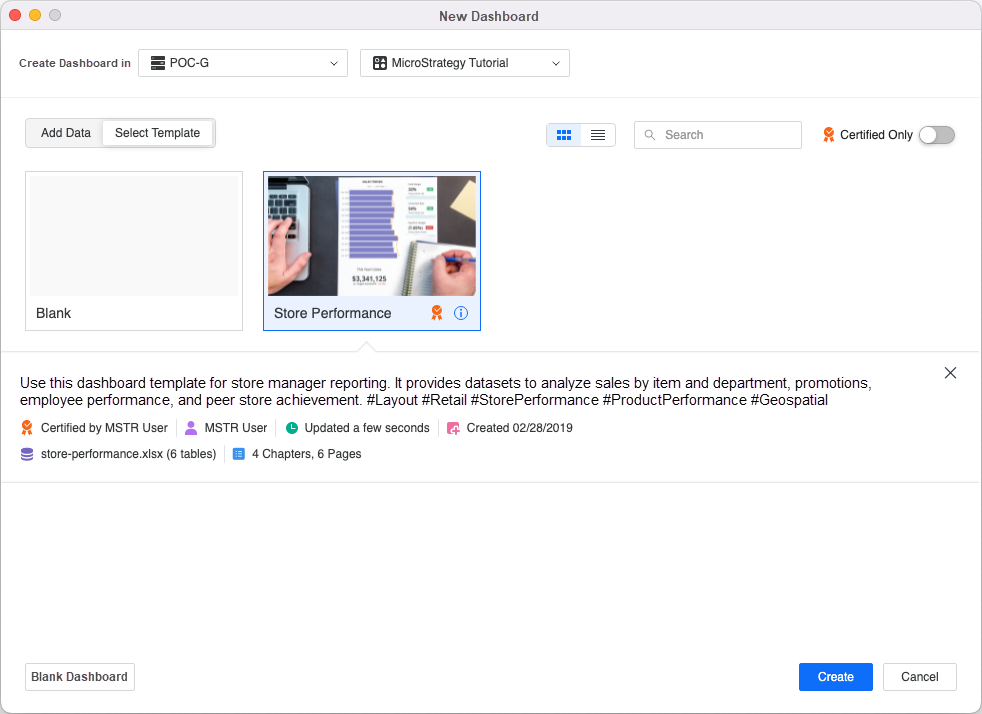 Create a New Dashboard Using a Template