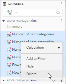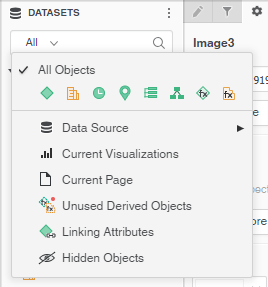 - In the Datasets panel, select the drop-down list in the Search
