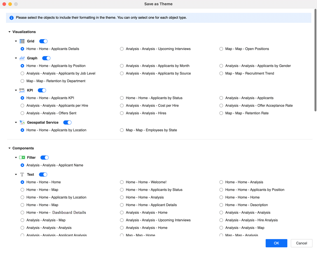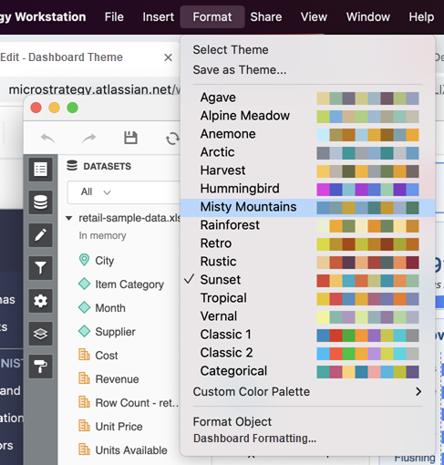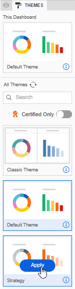 Library and Workstation users can apply a theme by a simply clicking to change the look and feel of their dashboards. This is much easier and efficient than changing the formatting in each visualization.