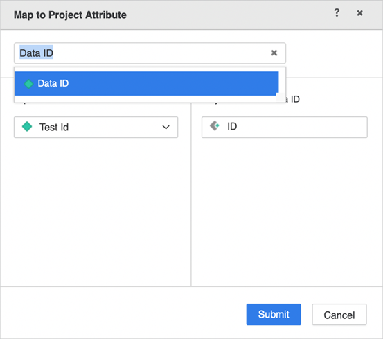 - In the top pane, right-click the attribute that is mapped to an existing project attribute and choose Map to Project Attribute.