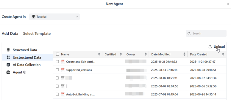 Add Unstructured Data While Creating an Agent
