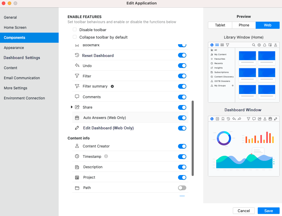Auto Answers is a chatbot integrated into your dashboards. It leverages the simplicity of conversational AI to lower the barrier to data analytics. You can enable and disable Auto Answers at the application level. For instructions to enable or disable it at other levels (user, project, and dashboard), see Auto Answers.
