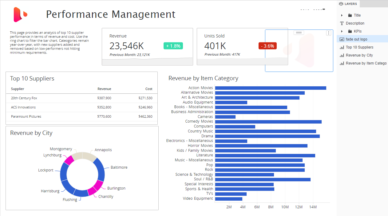 You can hide visualization containers to provide a more responsive experience on small devices such as mobile phones and tablets, as well as display only certain objects in large non-responsive default views for desktops and large tablets in landscape mode.