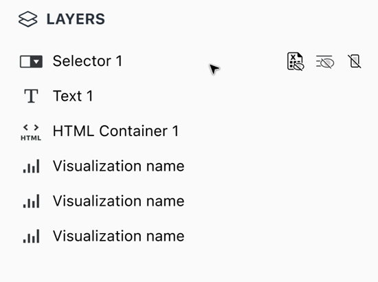 3. Once the text box, selector, HTML container, image or shape is hidden, an icon appears next to the hidden item.