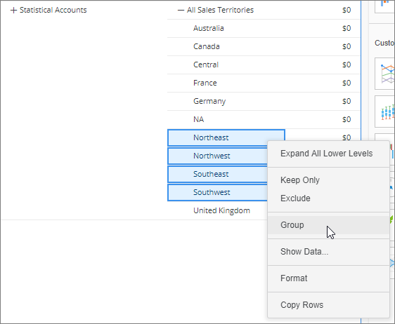 Grouping functionality also exists for regular attribute elements. For more information on grouping non-hierarchical attribute elements, see Create an Element Group.