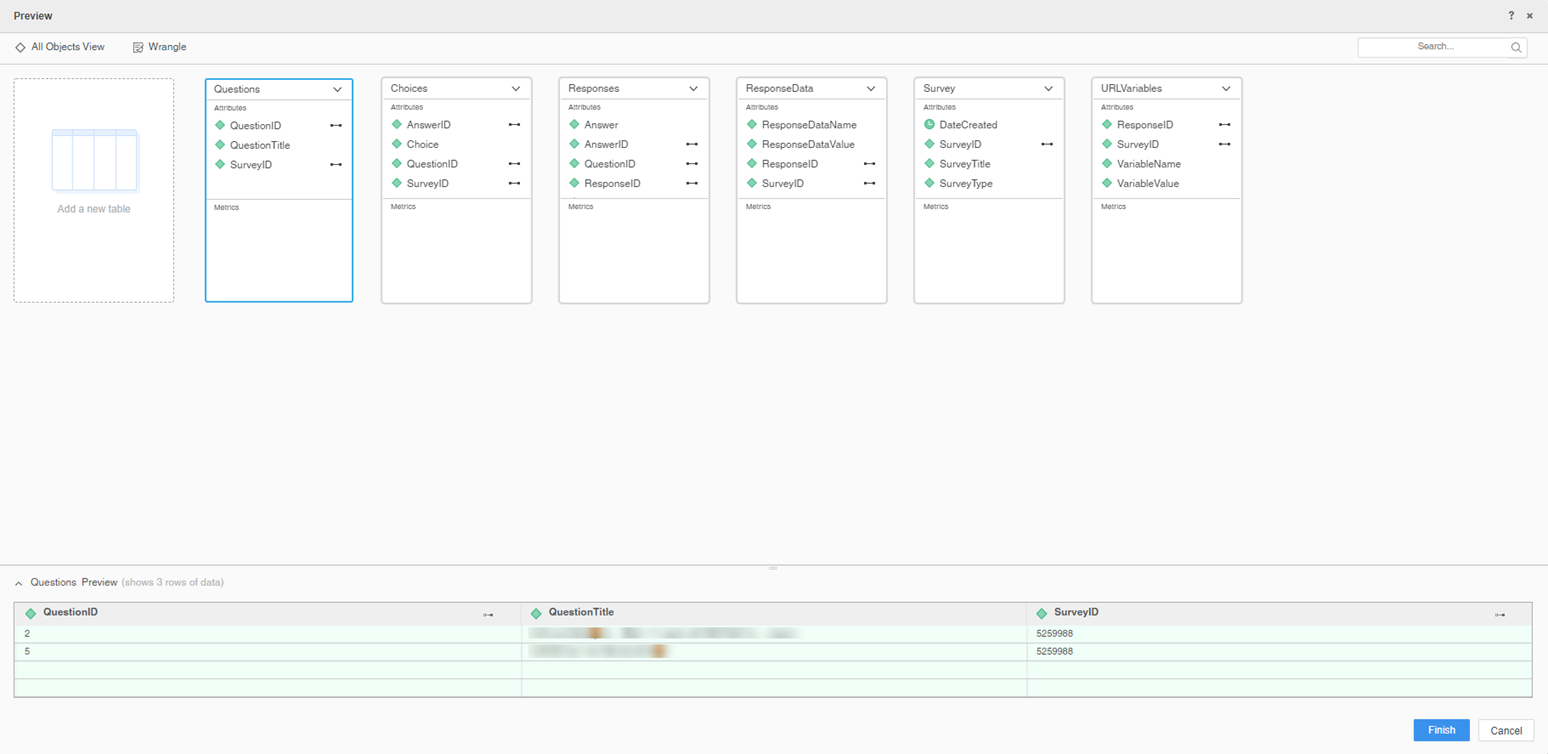 - On the Preview dialog, wrangle your data and click Finish.