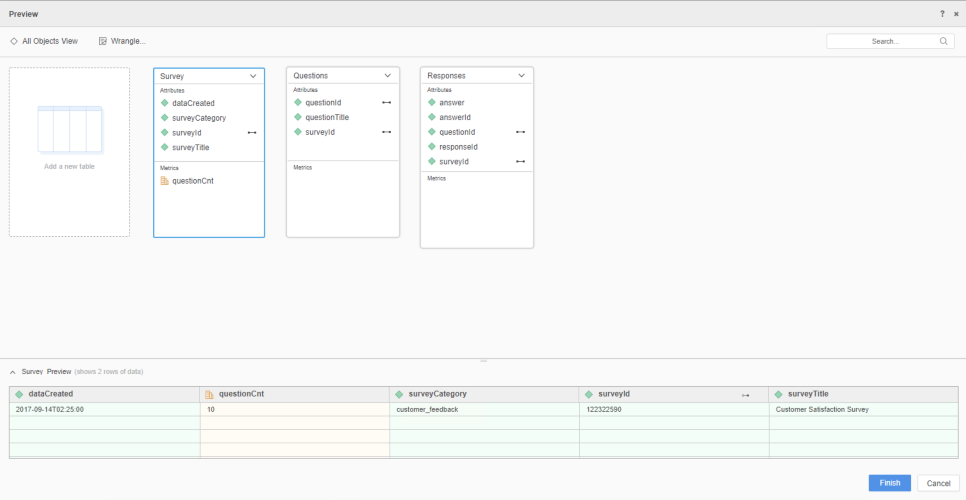 Starting in MicroStrategy ONE Update 12, you can use the SurveyMonkey connector as part of the new data import experience. If you are using a version earlier than MicroStrategy ONE Update 12, see Use the SurveyMonkey Connector Before MicroStrategy ONE Update 12.